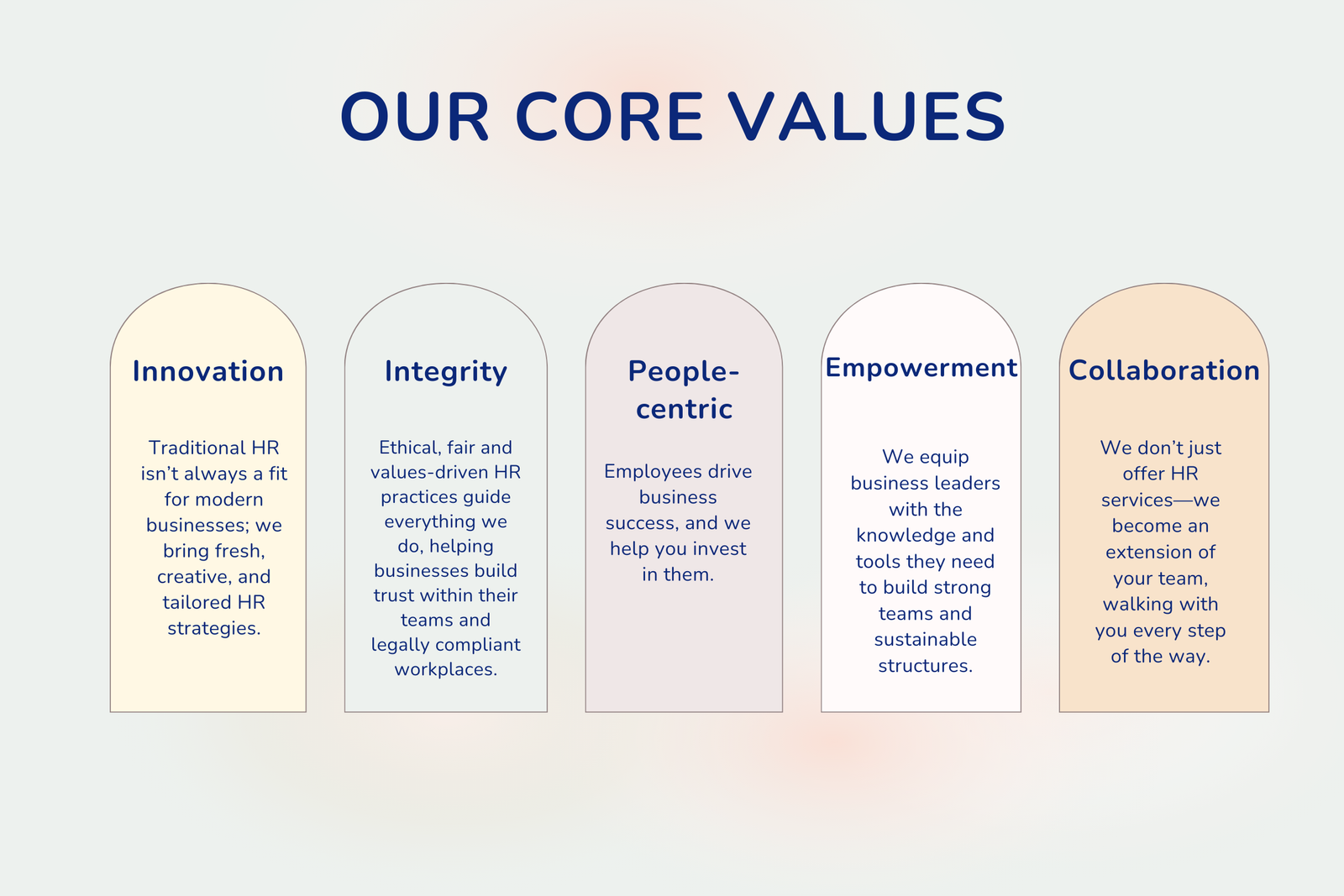To be the go-to HR partner for startups and SMEs, providing strategic, practical, and people-centric solutions that drive business growth and foster sustainable workplace cultures.
